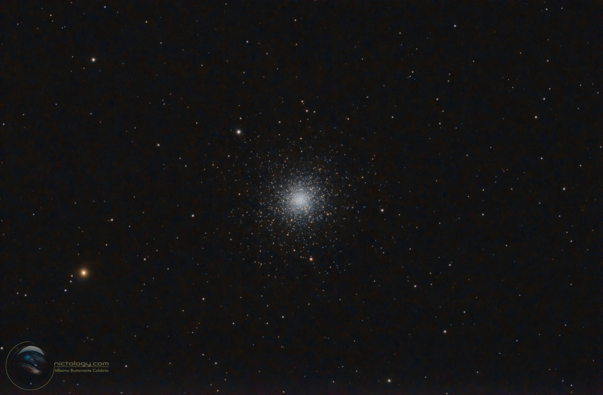 M3 es un cúmulo globular situado a 33.900 años luz en la constelación de Canes Venatici (los Perros de Caza), compuesto de unas 500.000 estrellas apretadas en no más de 18 minutos de arco de tamaño aparente. La mitad de su masa se encuentra en una esfera de unos 20 años luz de diámetro, lo que da una idea de la densidad de estrellas en su zona central. Si tenemos en cuenta que en nuestras proximidades, en 12 años luz a la redonda del Sol, hay unas 25 estrellas (y la mayoría enanas rojas) cuesta trabajo imaginar cómo sería el cielo si hubiera en este espacio ¡más de 200.000 estrellas! En M3 hay también una gran cantidad de estrellas variables (más que en otros cúmulos del halo galáctico) así como estrellas azules que se piensa que perdieron sus capas externas al interaccionar con otras estrellas en su paso por las regiones centrales del cúmulo.