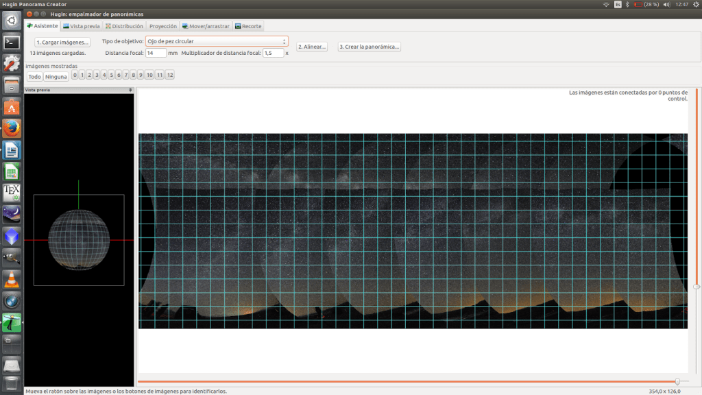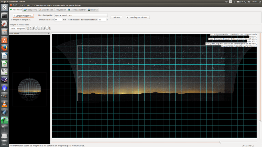 Una vez aportados estos datos básicos le damos al botón alinear y el programa buscará automáticamente los puntos comunes entre las imágenes, corregirá las distorsiones (según el tipo de objetivo utilizado) y realizará una unión provisional donde podremos ver el resultado. Lo más seguro es que haya errores y es entonces cuando toca el proceso manual.