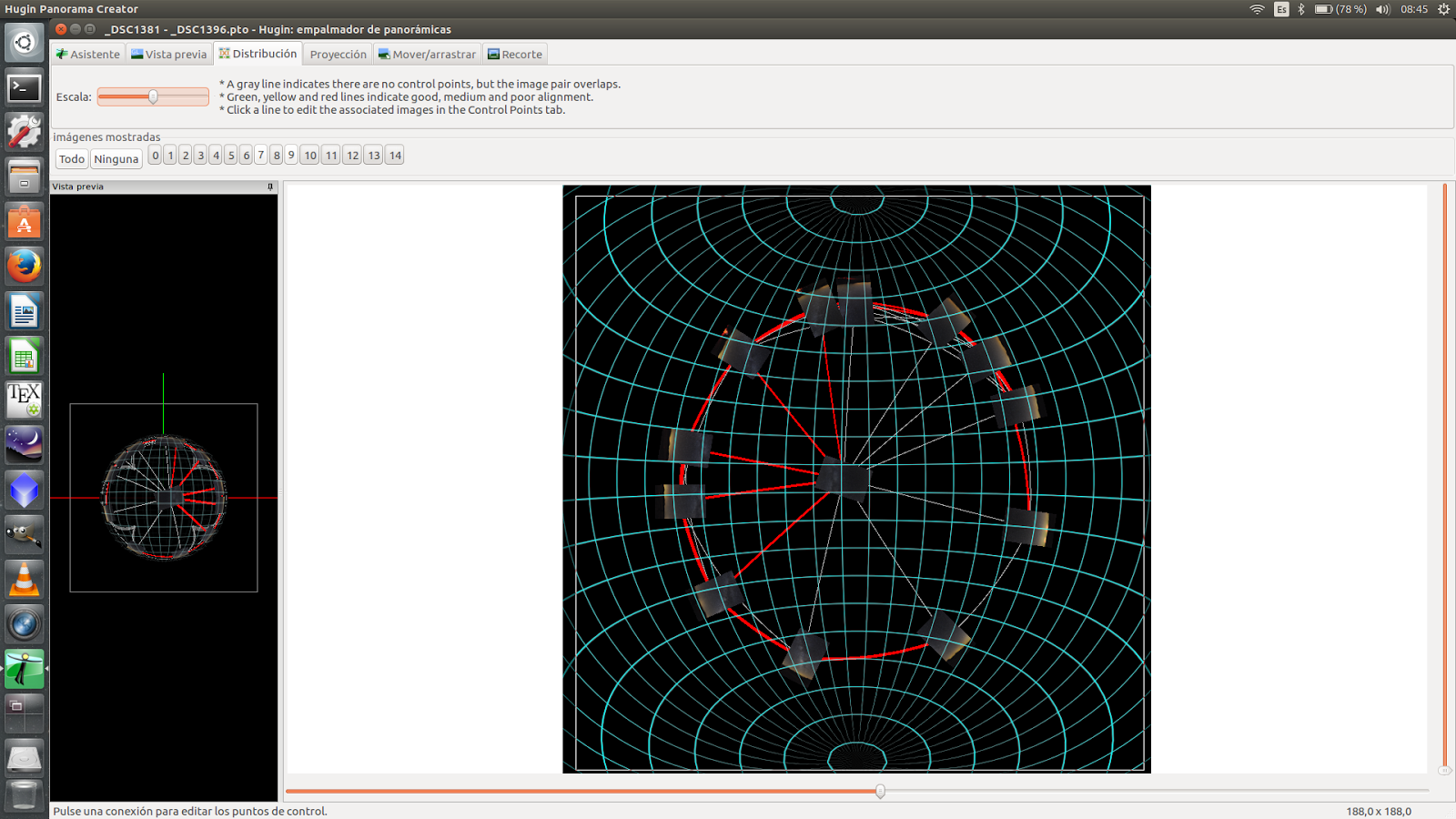 Una vez aportados estos datos básicos le damos al botón alinear y el programa buscará automáticamente los puntos comunes entre las imágenes, corregirá las distorsiones (según el tipo de objetivo utilizado) y realizará una unión provisional donde podremos ver el resultado. Lo más seguro es que haya errores y es entonces cuando toca el proceso manual.