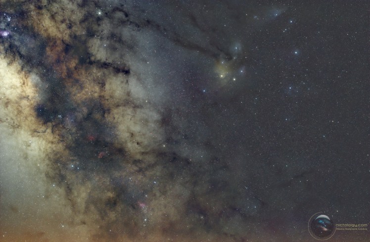 Escorpio está en una región muy rica del cielo, y por tanto es una constelación muy fotogénica para tomas de gran campo, pudiendo ser abarcada con un objetivo de 35 mm de focal. Tiene dos zonas muy atractivas para focales algo más grandes (por ejemplo 105 mm): por un lado la región de la cola (en el plano galáctico) alberga ricos campos de estrellas, cúmulos abiertos y varias nebulosas de emisión (por ejemplo las nebulosas de la langosta y de la pata de gato); por otro lado en la zona del tórax y las pinzas tenemos las complejas formaciones nebulares de Antares, Al Niyat y Jabbah, que junto a las de Rho Ophiuchi componen una de las regiones más cromáticas y bonitas del cielo nocturno.
