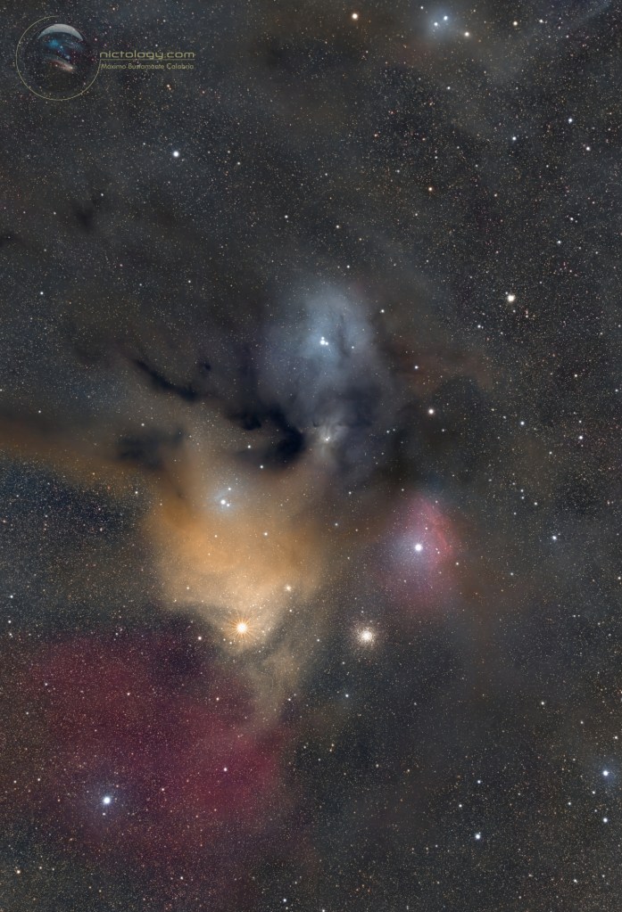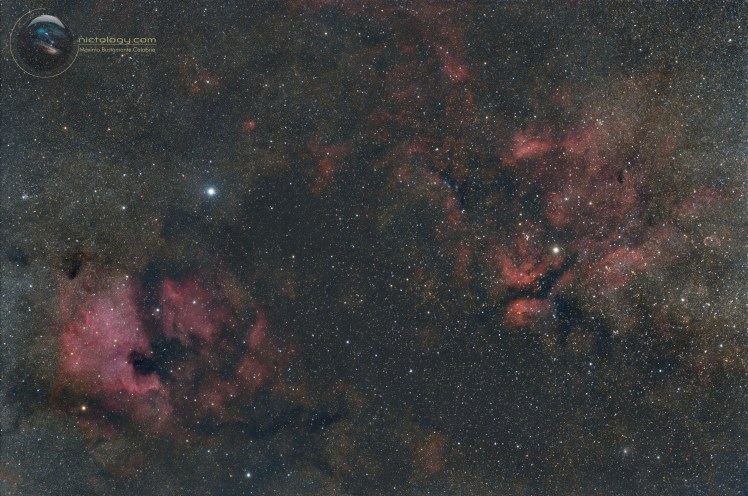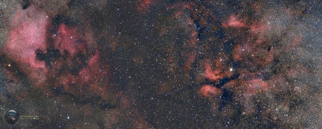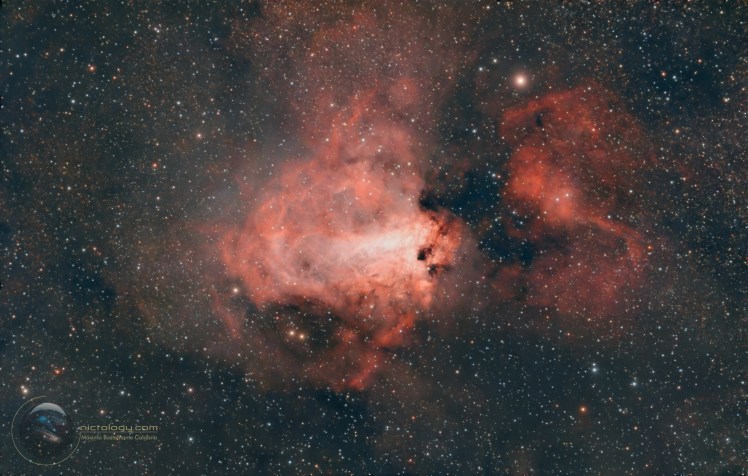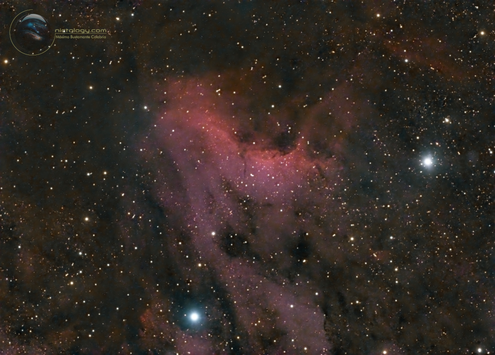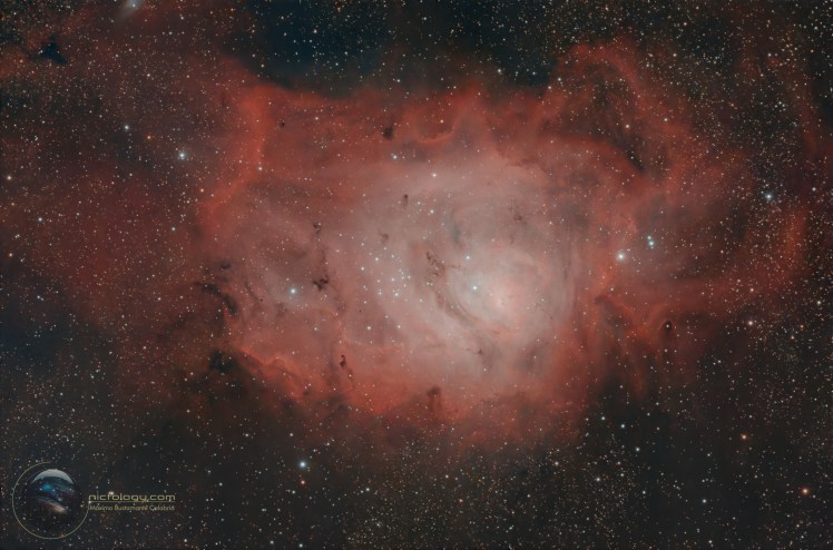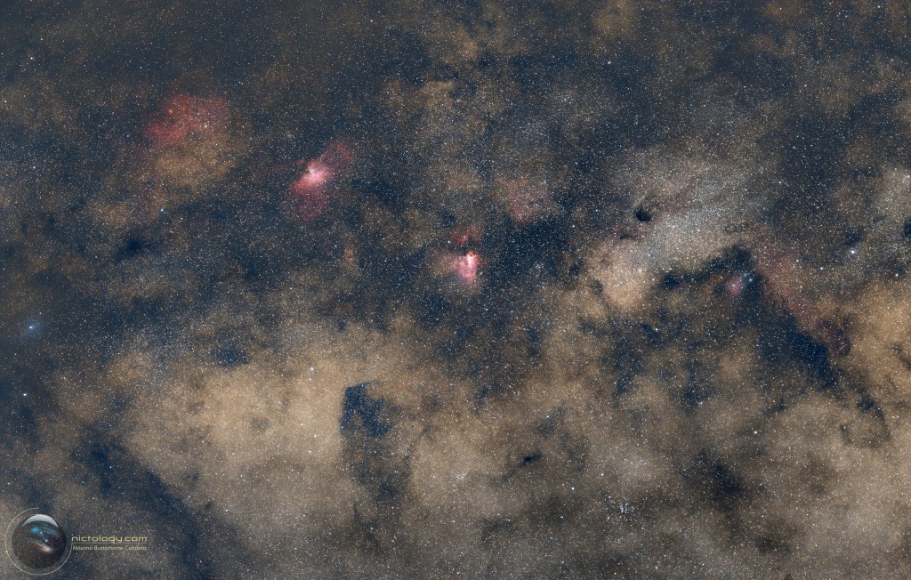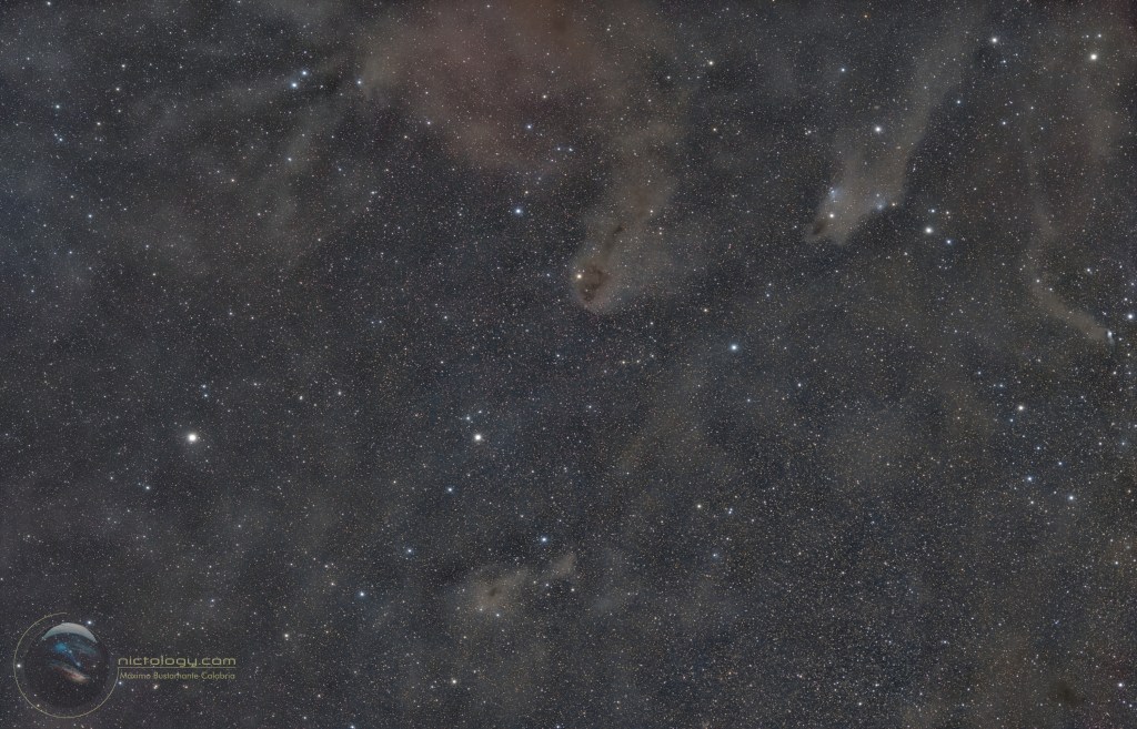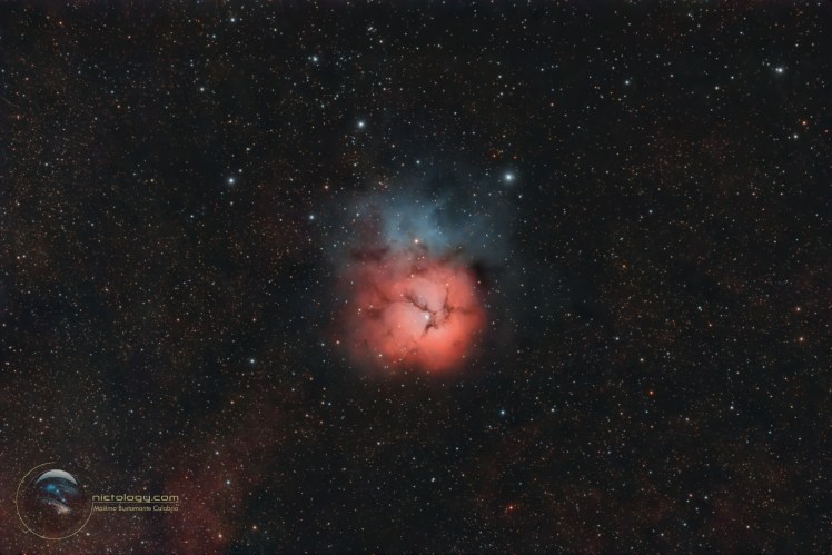 Montura Celestron CGEM + QHY Polemaster; telescopios refractores Explore Scientific CF ED127 y Long Perng ED66; aplanador de campo; cámaras Canon 350D modificada y Nikon D90; cámara de autoguiado Sky-Watcher SynGuider. Software: PixInsight.
