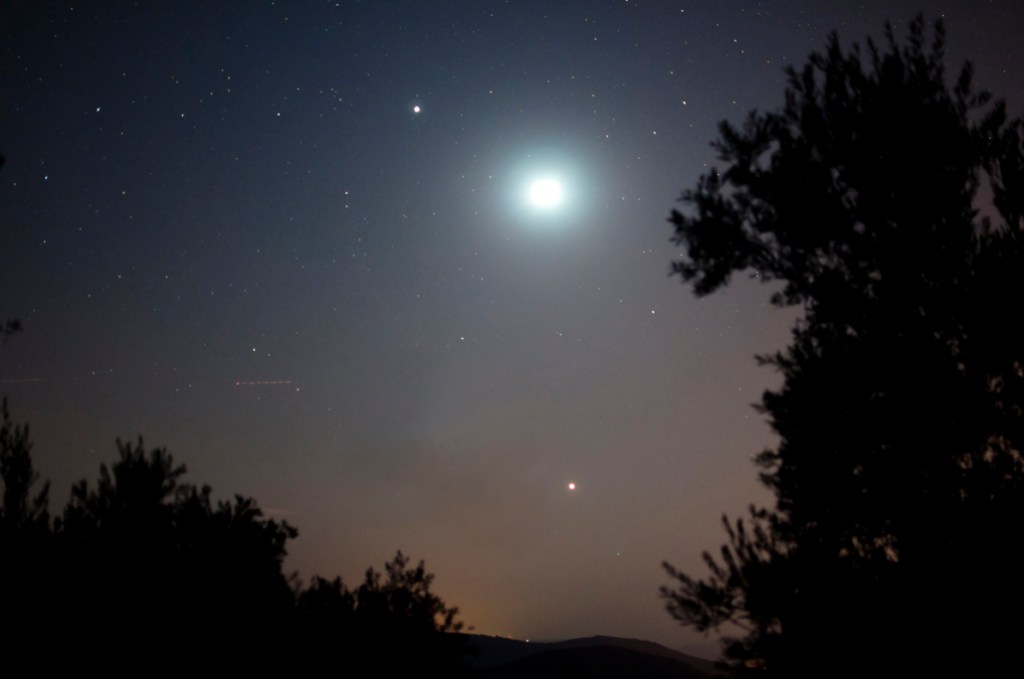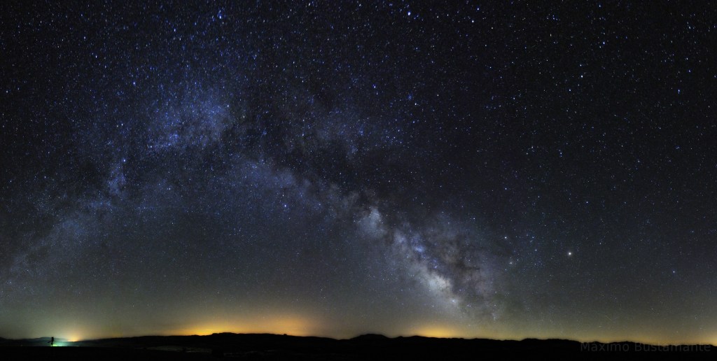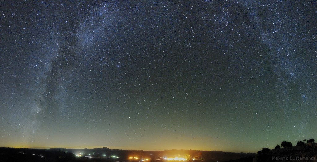 Como paisaje nocturno agrupo fotografías hechas sin seguimiento, con medios asequibles (cámara y trípode), que incluyen el horizonte o algún elemento en tierra. Pueden ser de tomas únicas o mosaicos panorámicos. También incluyo fotografía crepuscular o del atardecer. El procesado de estas imágenes es sencillo. Es la modalidad ideal para iniciarse y admite mucho juego con el horizonte y el uso de la iluminación sobre elementos en un primer plano. Para saber algo más de cada imagen o verla a tamaño completo pulsa sobre el símbolo de información.